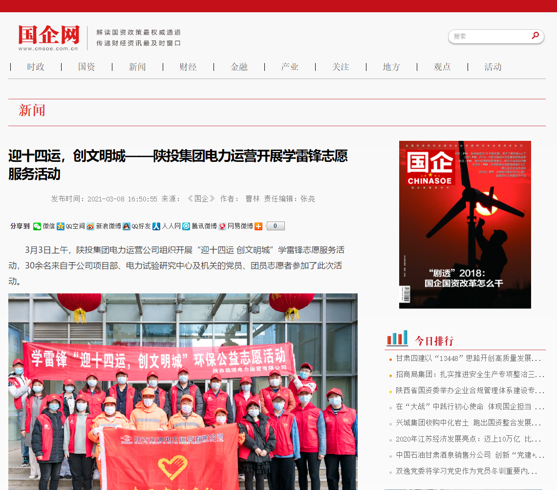 國企網(wǎng):迎十四運,創(chuàng)文明城——陜投集團(tuán)電力運營開展學(xué)雷鋒志愿服務(wù)活動