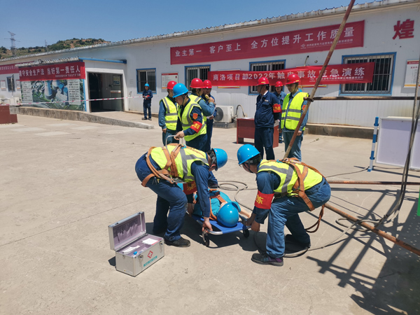 6月16日,商洛項目部組織開展“高處觸電急救”應(yīng)急演練活動,旨在提高作業(yè)人員對高處觸電事故的現(xiàn)場應(yīng)急處置能力、掌握受傷人員的緊急救護程序及方法、檢驗各救援小組應(yīng)急反應(yīng)能力。商洛發(fā)電安健環(huán)部、設(shè)備部觀摩了此次演練。
