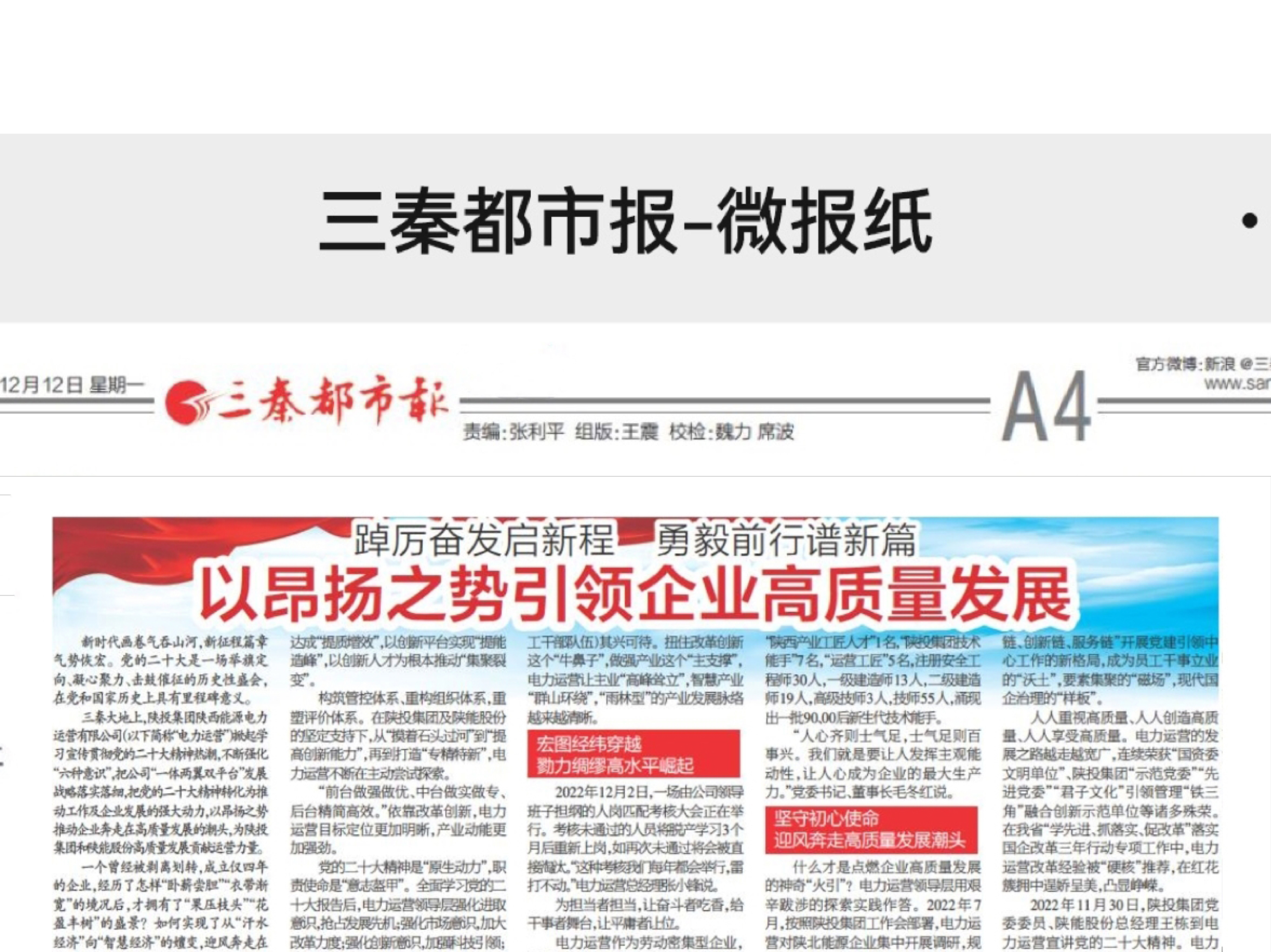 三秦都市報(bào):電力運(yùn)營(yíng) 以昂揚(yáng)之勢(shì)引領(lǐng)企業(yè)高質(zhì)量發(fā)展