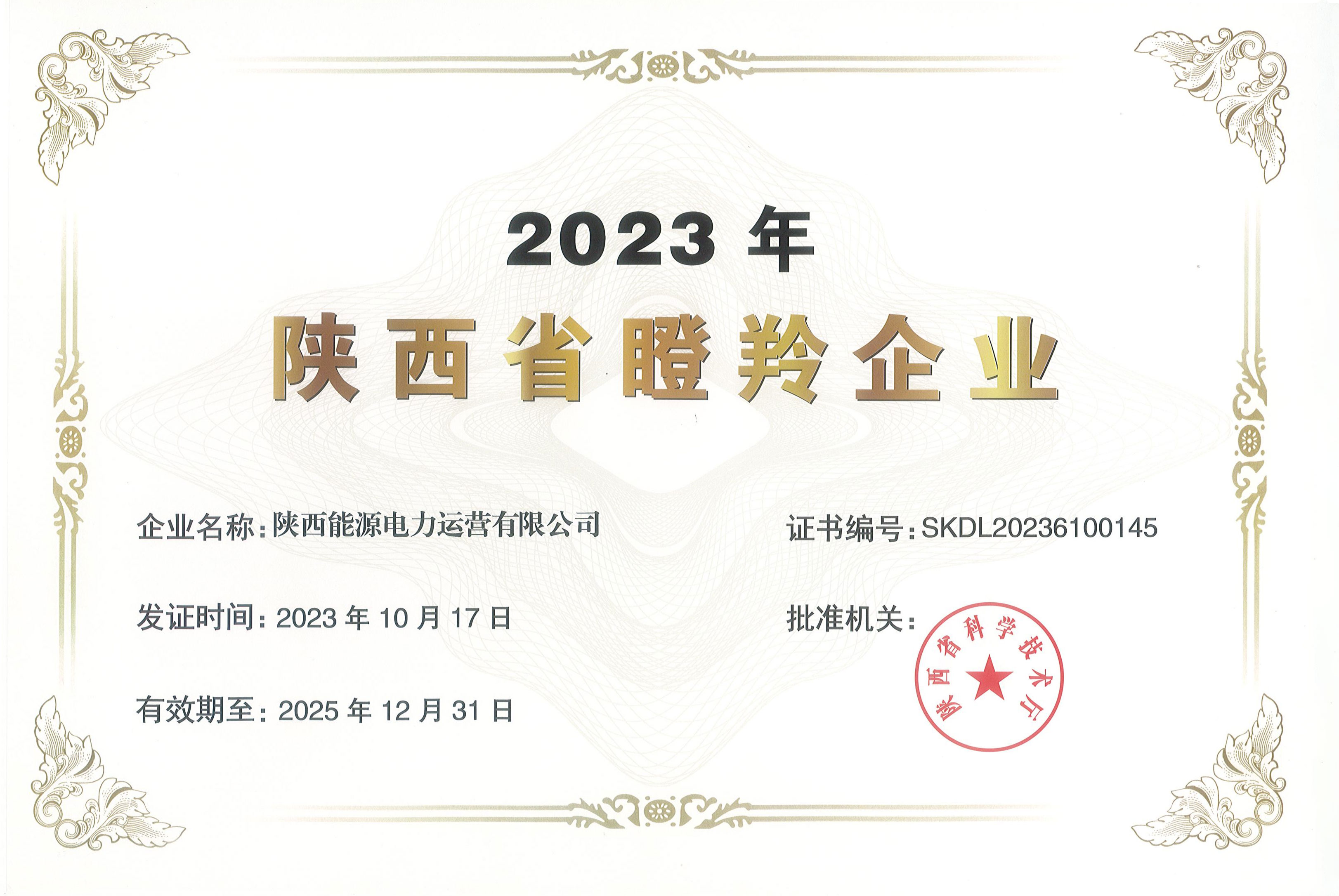 日前,公司成功入選2023年陜西省瞪羚企業(yè)名單!