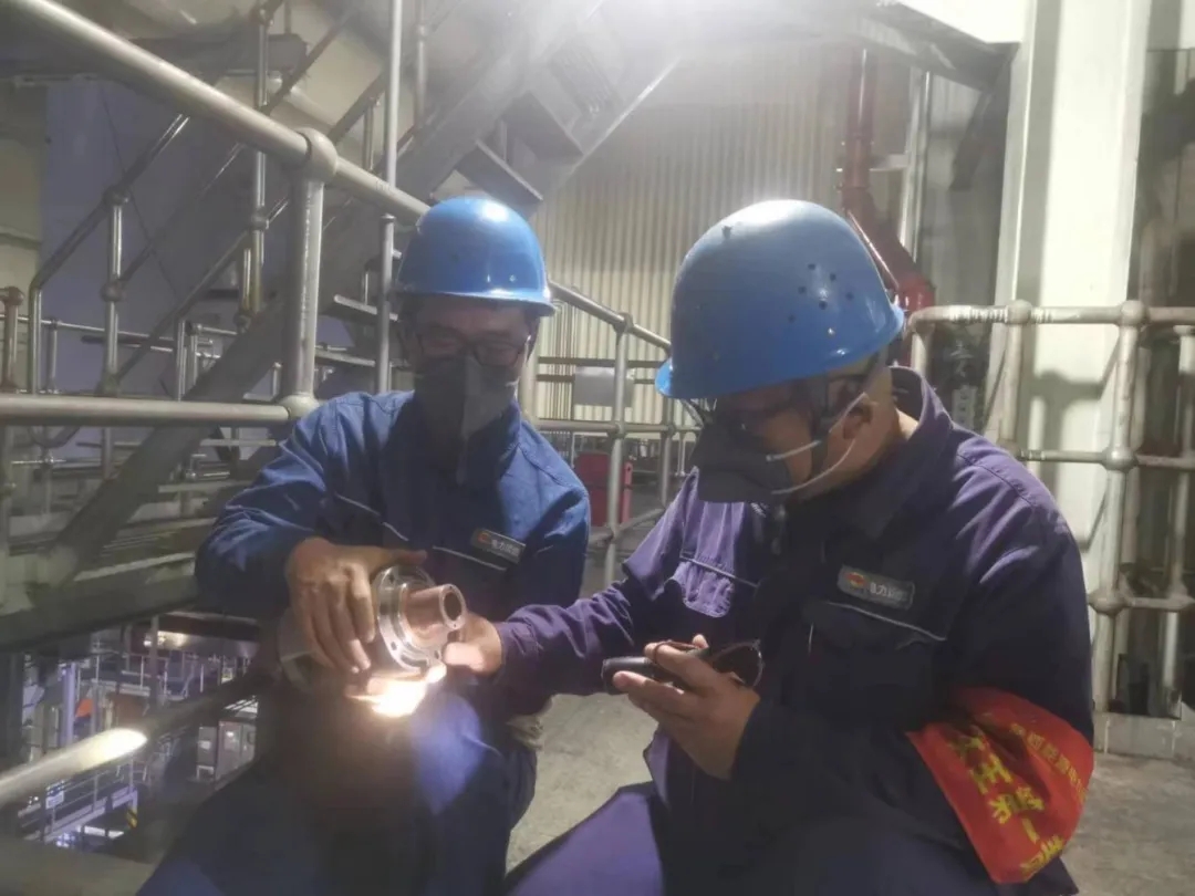 “師傅,你歇一會(huì),我來(lái)!”這個(gè)穿梭于設(shè)備之間、汗水與灰塵交織在臉上的是灰硫檢修班青工史普州正幫助師傅完成粗灰?guī)靸?nèi)部清灰作業(yè),兩人緊密配合,可謂是最默契的“CP”組合。