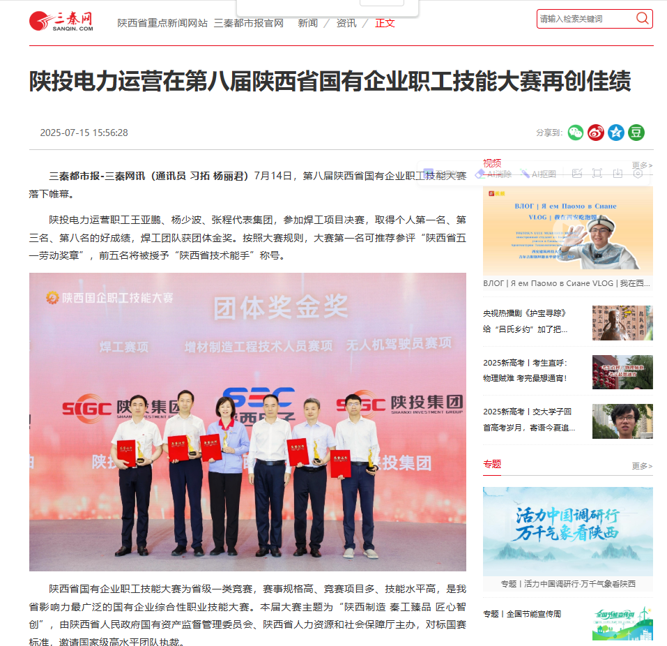 三秦網(wǎng):陜投電力運(yùn)營在第八屆陜西省國有企業(yè)職工技能大賽再創(chuàng)佳績